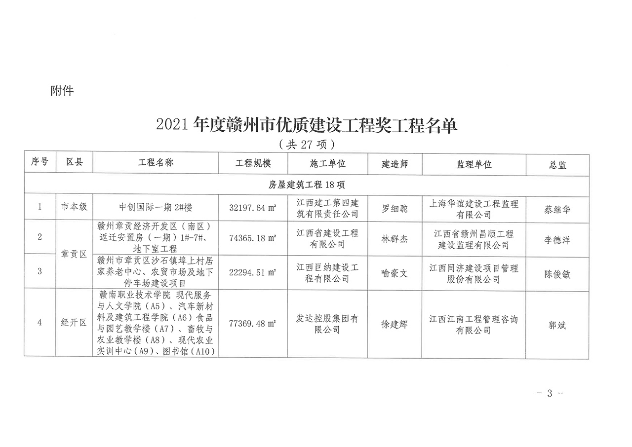 關(guān)于公布2021年度贛州市優(yōu)質(zhì)建設(shè)工程獎(jiǎng)工程名單的通知